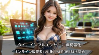 タイ政治・経済 タイ税務当局が課税強化 ~インフルエンサーとオンライン販売者への新たな監視~ タイ歳入局が10月16日、インフルエンサーとオンライン販売者に対する税務執行強化を発表。450億バーツ規模のクリエイターエコノミーと1兆バーツ超のEC市場からの税収確保が目的。AIとプラットフォーム連携による新たな執行体制で、デジタル経済の匿名性が終焉。 2025.10.18 タイ政治・経済