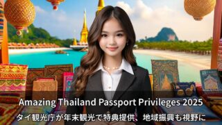 Uncategorized タイ観光促進キャンペーンAmazing Thailand Passport Privileges 2025が本格始動 タイ政府観光庁が年末観光シーズンに向けて「Amazing Thailand Passport Privileges 2025」キャンペーンを開始。パスポート提示で全国300以上の事業者から割引・特典を受けられ、4億バーツの観光収入創出を目指す。中国市場回復遅れへの対応と官民連携の実施体制を詳しく解説。 2025.10.20 Uncategorized