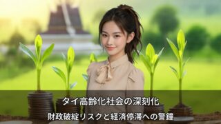 タイ政治・経済 タイ高齢化社会の深刻化~財政破綻リスクと経済停滞への警鐘 タイが超高齢社会に突入し複合的危機に直面。高齢者の半数が貯蓄なく負債を抱え、公的債務はGDP比64%に到達。財政破綻と経済停滞のリスク、シルバーエコノミーの可能性、企業への影響を詳しく解説。 2025.10.03 タイ政治・経済