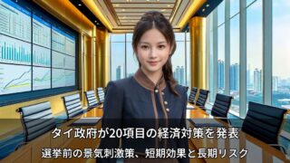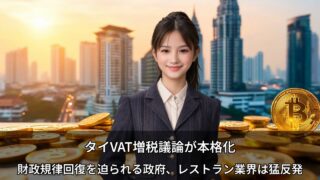 タイ政府が2029年までに財政赤字GDP比3%未満を目指す中期財政計画を閣議決定。VAT増税案は財務省とアヌティン首相の間で対立を生んでいる。レストラン業界は「二重の負担」問題を理由に強く反発。少子高齢化で膨らむ社会保障費と財政再建の狭間で揺れるタイ経済の行方を詳しく解説。
